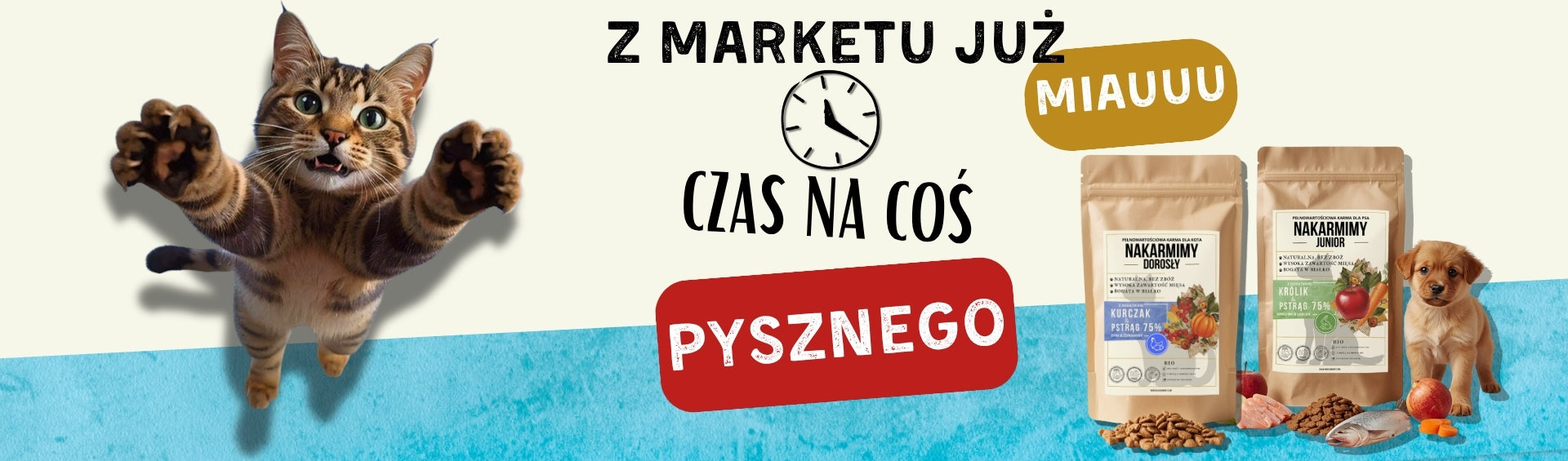 Wszystkie zamówienia wysyłamy zazwyczaj w 24 godziny, a w dni robocze nawet tego samego dnia, jeśli zamówienie zostanie złożone do godziny 13:00. Czas dostawy wynosi zwykle 1–2 dni robocze, w zależności od przewoźnika, ale dołożymy wszelkich starań żeby karma dotarła następnego dnia.
