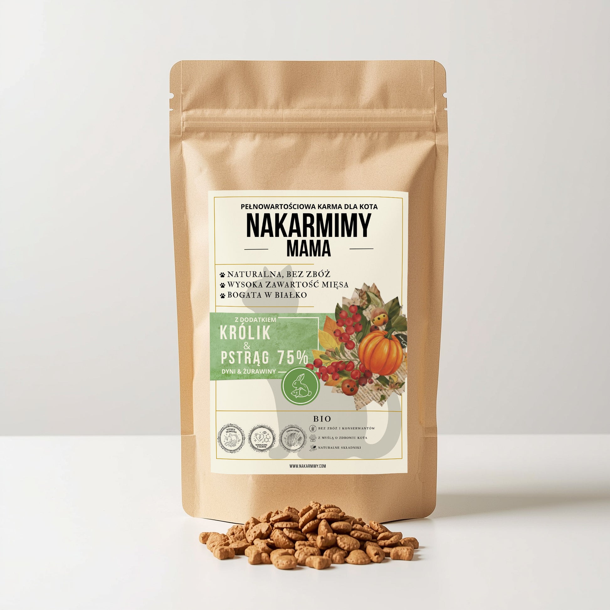 Karma sucha Kot MAMA NAKARMIMY – Królik i Pstrąg 75% Dynia i Żurawina