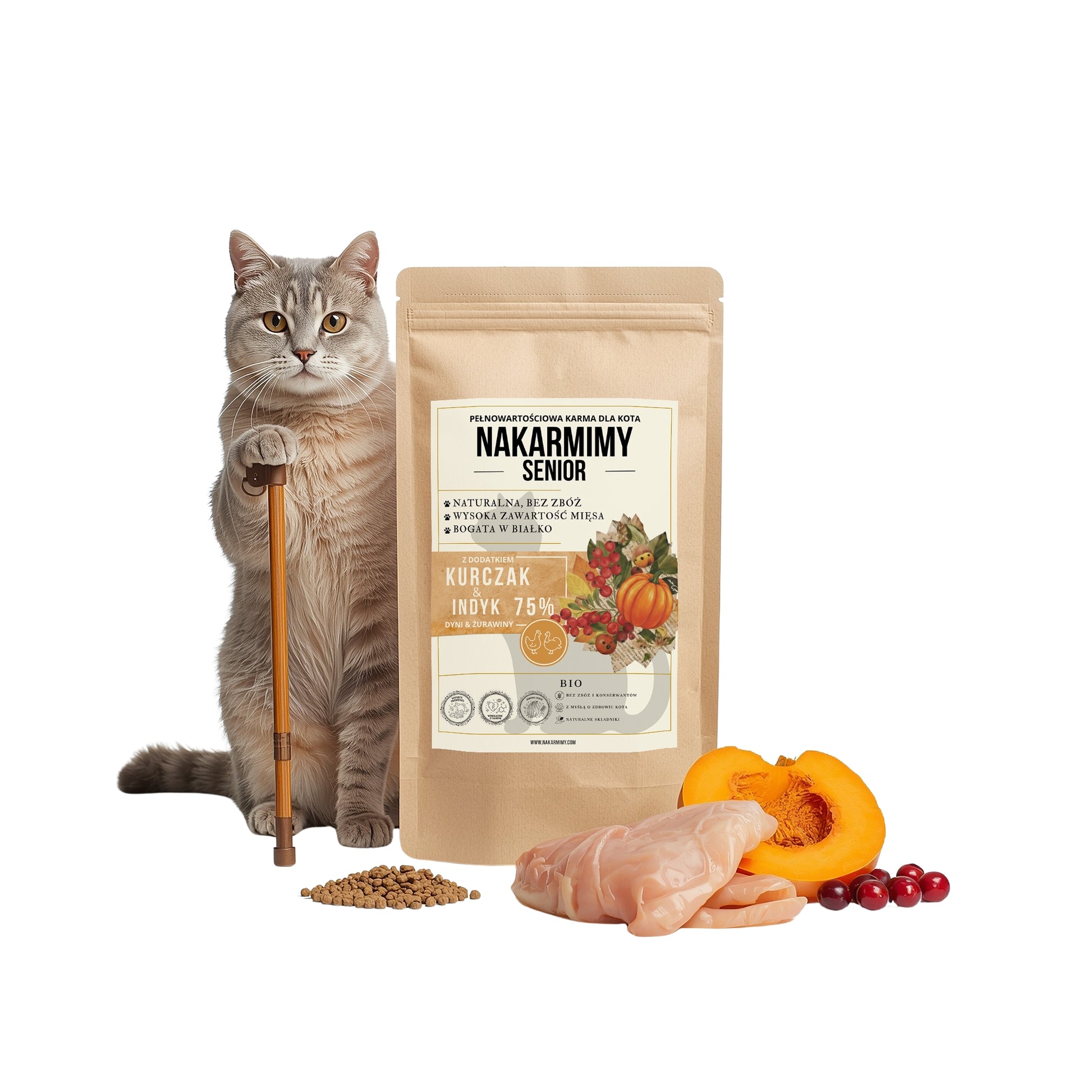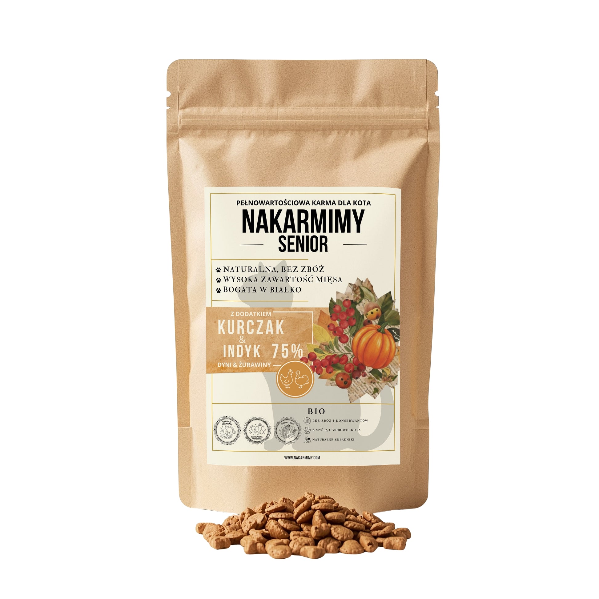 Karma sucha Kot Senior NAKARMIMY – Kurczak i Indyk 75% Dynia i Żurawina