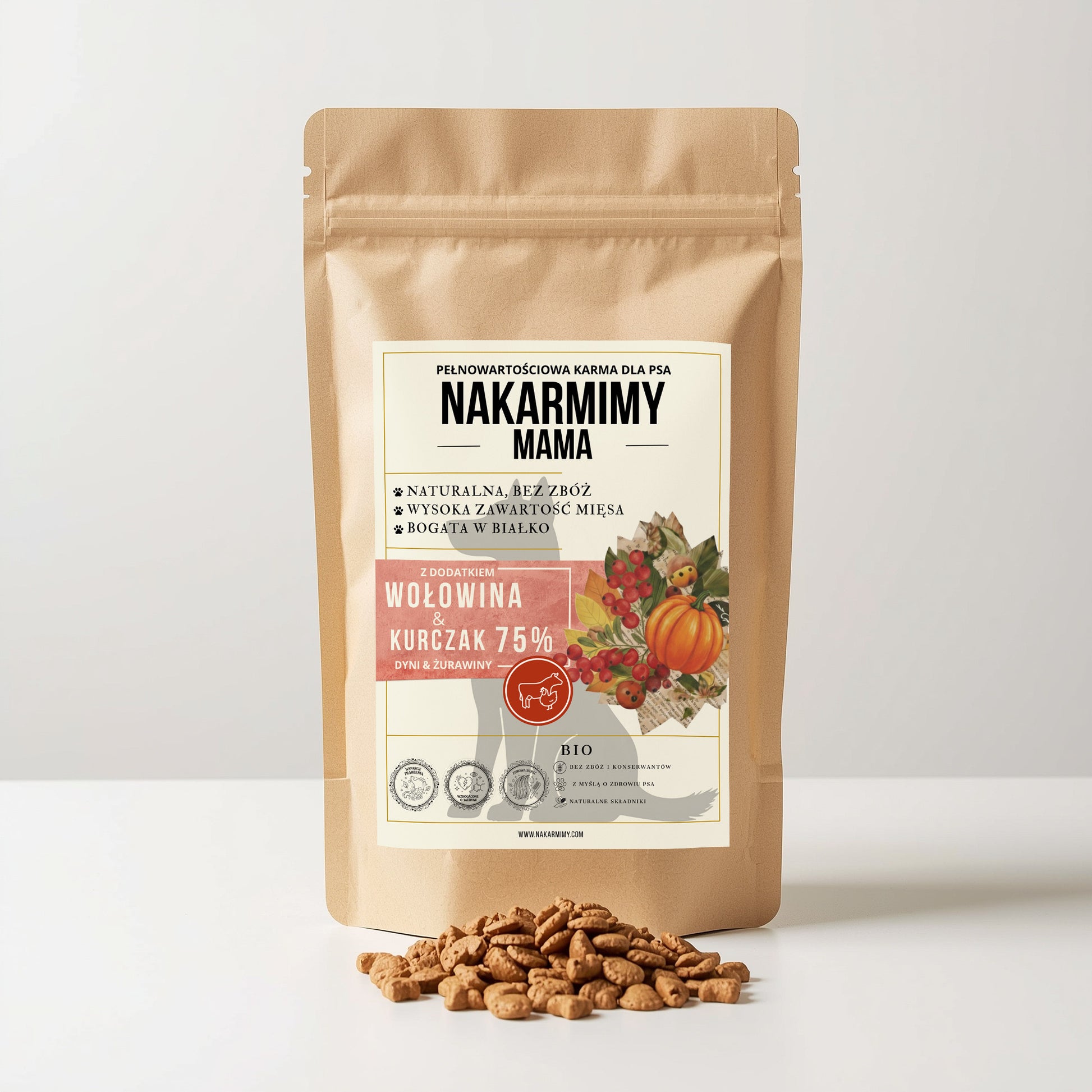 Karma sucha Pies Mama NAKARMIMY – Wołowina i Kurczak 75% Dynia i Żurawina
