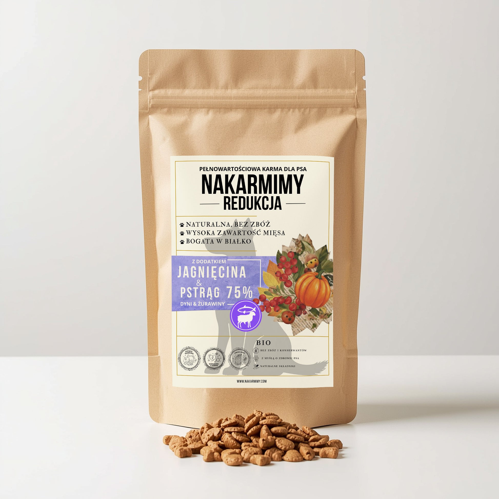 Karma sucha Pies Redukcja NAKARMIMY – Jagnięcina i Pstrąg 75% Dynia i Żurawina